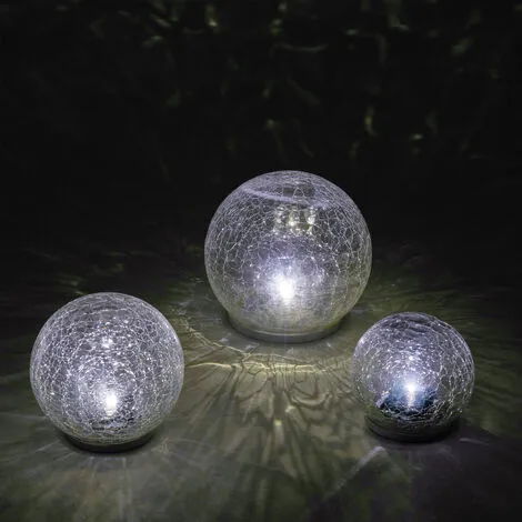 Grâce à leurs diamètres gradués de 10, 12 et 15 centimètres, les trois billes « Crackle Ball » se complètent parfaitement; ils sont idéaux comme groupe décoratif de lumières.