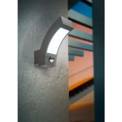 Design de luminaires haut de gamme pour le jardin et la zone dentrée. Éclairage LED longue durée avec un rendement lumineux élevé de plus de 300 lm avec une puissance de seulement 4,5 W. Conception en aluminium stable, anodisé anthracite pour montage mural. Couleur claire blanc neutre ou blanc froid. LEDs installées en permanence et non modifiables. Détecteur de mouvement réglable au moyen de vis de réglage.