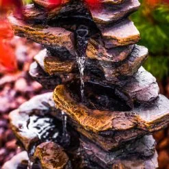 La fontaine de jardin cascade Rock Fountain attire le regard dans le jardin, mais aussi sur la terrasse ou le balcon. Il se compose de la polyrésine plastique de haute technologie. Cela ressemble à une vraie pierre, et en même temps est tout aussi résistant que celui-ci. Étant donné que la fontaine cascade en polyrésine est plus légère que la pierre, elle peut facilement être installée nimporte où dans le jardin.