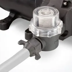 Un tuyau darrosage avec un pulvérisateur de jardin peut être connecté du côté refoulement. Le pressostat intégré arrête la pompe lorsque la projection est fermée. La pompe à membrane est extrêmement robuste et dispose de 7 membranes. Le moteur à courant continu brille par sa puissance de traction et sa durabilité.