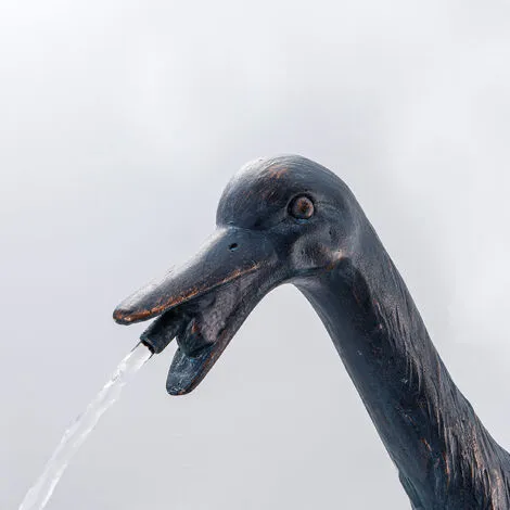 La figurine de gargouille « Oie Erna » peut être facilement raccordée à une pompe de bassin existante à laide du tuyau fourni (ø 13 mm). Cest à vous de décider si vous utilisez la gargouille avec une pompe solaire esotec appropriée ou une autre pompe.