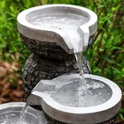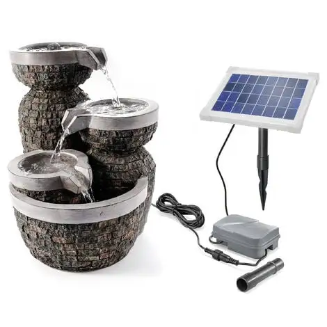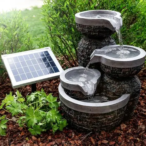 Si leau coule doucement sur les bols jusquau fond, la fontaine à bol créera une ambiance très atmosphérique dans votre jardin. Le module solaire inclus dans la livraison fait fonctionner la pompe de la fontaine solaire. Il est si puissant quil recharge également la batterie fournie. Tout ce que vous avez à faire est de coller le module solaire avec la pointe de terre dans un endroit ensoleillé dans le sol et de connecter à la fois la batterie et la fontaine solaire avec un câble.