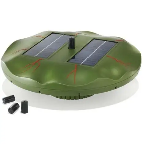 Il suffit de placer la pompe solaire nage à la surface de l’eau et en dehors.Quand le soleil brille, la pompe commence à pomper l’eau. Le nénuphar est livré avec 4 buses différentes.