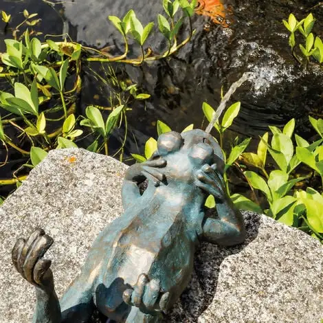 Notre figurine deau « Lazy Frog » sait comment sintégrer sans effort et discrètement dans votre paysage de jardin existant. Peu importe quil soit placé au bord dun étang de jardin ou comme pièce deau à côté dune petite baignoire en zinc.
