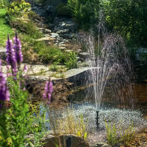 Le boîtier de batterie dispose de 2 sorties commutables. La pompe est connectée à la sortie 18 V. Cette sortie peut être utilisée en mode minuterie. Cela signifie que la pompe est mise en marche toutes les heures pendant environ 10 minutes. Un aérateur de bassin, une pompe ou un éclairage peut être connecté à une autre sortie 6V commutable. Pompe fermée sans balais de haute qualité avec protection contre la marche à sec et contre les surcharges et éclairage LED longue durée. Différentes fontaines peuvent être générées avec les 4 tuyaux montants inclus et 2 arroseurs différents (fontaine à 3 étages et cloche à eau). Prêt à brancher, configuré en quelques minutes.
