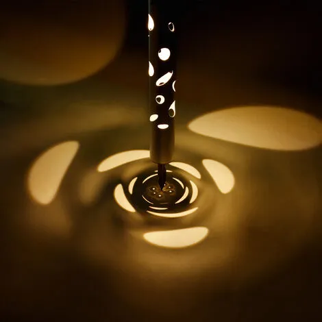 Ici tout est rayon : Cylindres, cercles et ellipses déterminent le langage formel de la «Fantasy Light» à énergie solaire. Des ouvertures décoratives arrondies traversent son boîtier en aluminium avec une finition satinée et font de cette lampe solaire un véritable accroche-regard même pendant la journée.