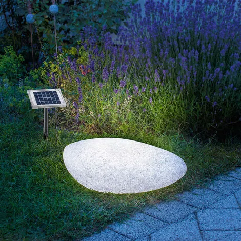 La version en plastique robuste en PE peut être utilisée toute lannée à lextérieur. Un module solaire puissant de 2 Wc avec un câble de 5 m charge complètement la batterie Li-Fe intégrée dans les 6 heures densoleillement. Le module solaire peut être aligné de manière optimale avec le soleil à laide dun piquet de sol avec une rotule. Lorsque la batterie est complètement chargée, la pierre sallume pendant 20 heures. La combinaison puissante vous donne une très bonne fonction même pendant les mois dhiver. La pierre lumineuse contient un total de 8 couleurs claires et peut être utilisée en lumière continue ou en lumière alternée pendant une minute.