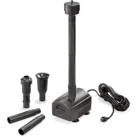 La pompe est dotée dun câble de raccordement de 5 m de long et dune protection intégrée contre la marche à sec. Le débit deau peut être réduit mécaniquement via un régulateur. Le positionnement sécurisé est effectué à laide de 4 pieds ventouses sur la face inférieure de la pompe. Il y a une petite éponge filtrante dans la zone daspiration de la pompe.