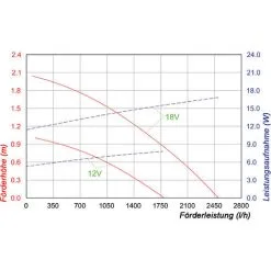 - Hauteur de refoulement : Jusquà 1 m (à 12 V) et 2 m (à 18 V)