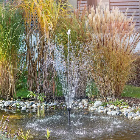 La pompe peut fonctionner via un module solaire approprié, une batterie 12 V ou une alimentation électrique isolée galvaniquement. La livraison comprend un vaste ensemble darroseurs avec des tuyaux montants, de sorte quune fontaine à eau à 3 étages, une cloche à eau ou un jet bouillonnant peuvent être générés.