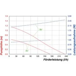 - Hauteur de refoulement : max. 50 cm (à 6 V), max. 100 cm (à 9 V)