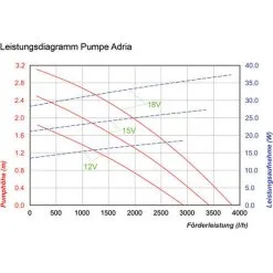Pompe de cours deau particulièrement puissante pour un fonctionnement sur une installation solaire 12 V ou directement via un module solaire dune puissance dau moins 50 Wc. La pompe est équipée dune protection contre la marche à sec. La sortie deau peut être réglée de manière optimale à laide dun joint à rotule et un tuyau dun diamètre intérieur de 25 à 38 mm peut être installé.